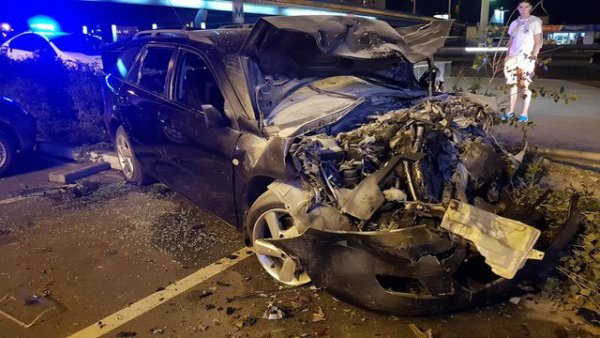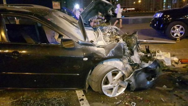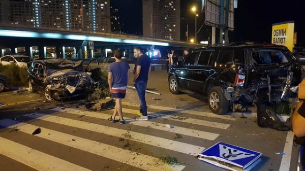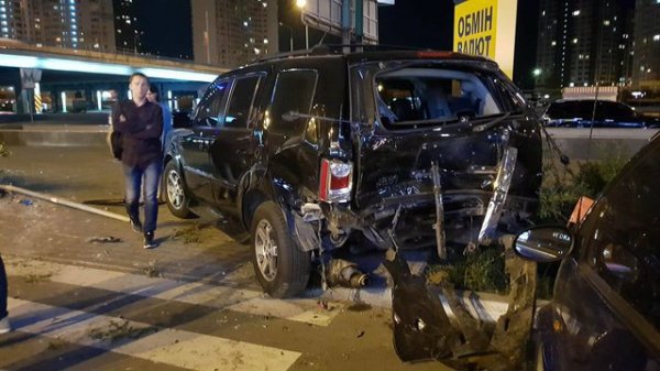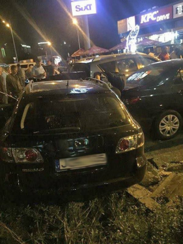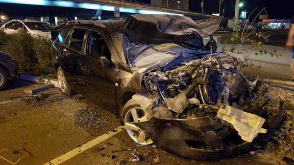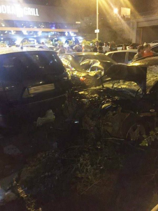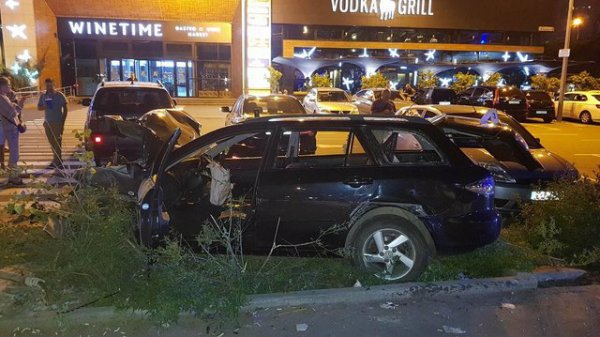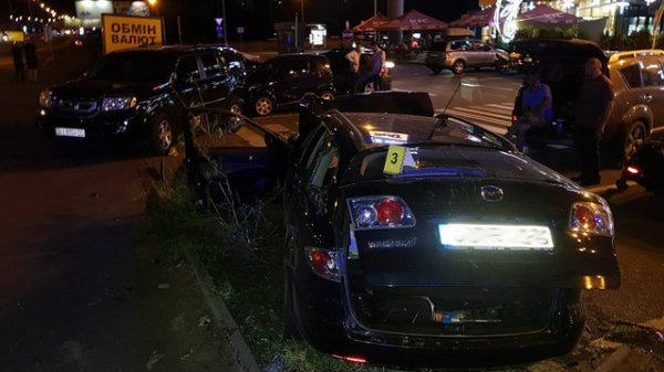 В Киеве на ул. Бажана произошло жесткое автопобоище. Автомобиль Mazda на высокой скорости вылетел с дороги на тротуар и парковку, отбросил припаркованный Honda Pilot на 15 метров и влетел в Toyota и Mitsubishi, сообщает .