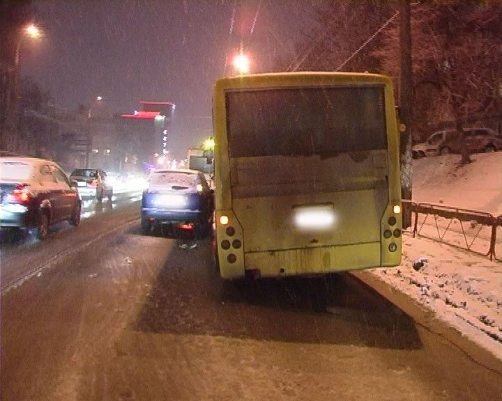 Это ДТП произошло 11 февраля, вечером в 21:15, в г. Киев, на улице Гетьмана, 22. По предварительным данным, водитель (1973 г.р.) автомобиля Ford Focus выехал на полосу встречного движения, где столкнулся с Skoda Octavia, после чего врезался в маршрутный автобус Богдан, припаркованный в правом ряду, сообщает .