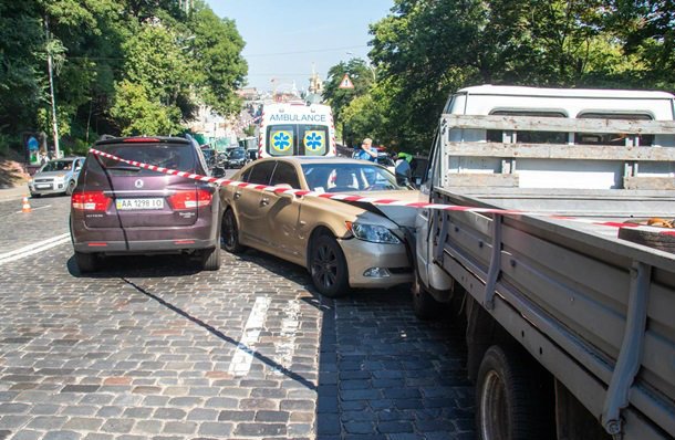 "По словам водителя Газели, он спускался по Владимирскому спуску в сторону Почтовой площади и увидел, как Lexus вылетел на встречную полосу, врезался в Ssang Yong, а после и в его грузовик. После столкновения автомобиль продолжал буксовать на месте. Подойдя к Lexus, он увидел, что за рулем сидит мужчина, который бьется в конвульсиях", – говорится в сообщении.