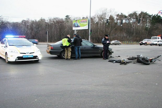 По рассказам очевидцев, автомобиль BMW и мотоцикл Loncin стояли на Братиславской, на светофоре в направлении Броварского проспекта. Когда им загорелся "зеленый", оба водителя начали движение.