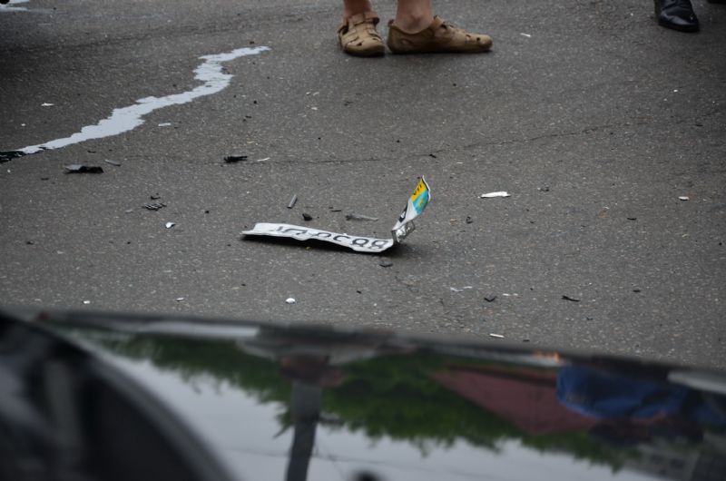 Только что в Сети появился видеоролик о произошедшем. Автор съемки пишет, что «водитель вместе с владелицей автомобиля Porsche Panamera сбил, летя на «красный» свет на большой скорости, Hyundai Accent и Ssang Yong Rexton. «Владельцы "Porsche" снимали номера и прятались на задних сидениях. И пытались запретить снимать происходящее… Номера Porsche –AA 8838 BP», - добавляет автор видео. В связи с этим становится не очень понятно, действительно ли владелец Порше оставил место ДТП и свой автомобиль, и не совсем ясно, кто тогда "защищал" автомобиль. Возможно, приехавшЫе на место аварии друзья/родственники виновника. В нашей стране так бывает часто.
