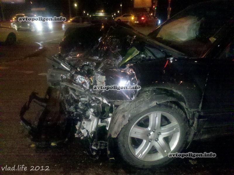 В результате мавтомобили разворачивает на 180 градусов и отбрасывает на 20 метров друг от друга - Mercedes обратно на центр перекрестка, Subaru на ул. Кривоноса, где машина выламывает колесо о бордюрный камень.