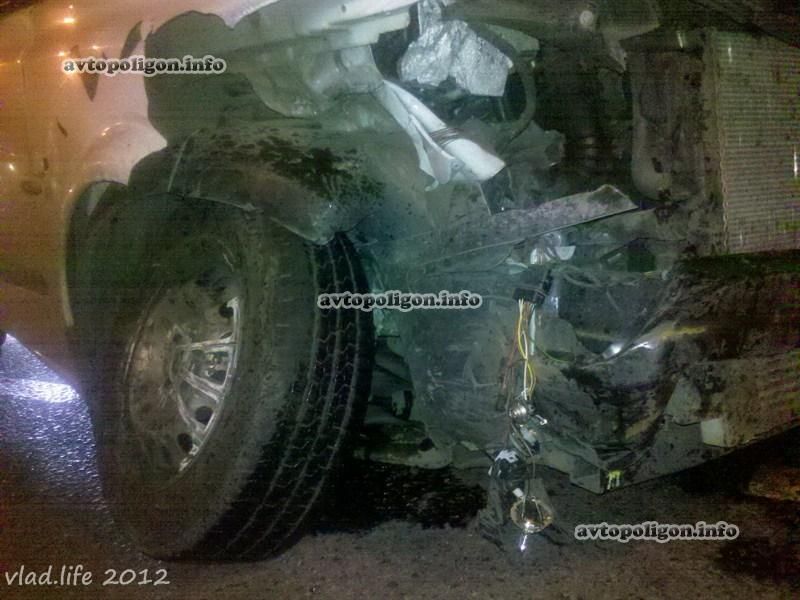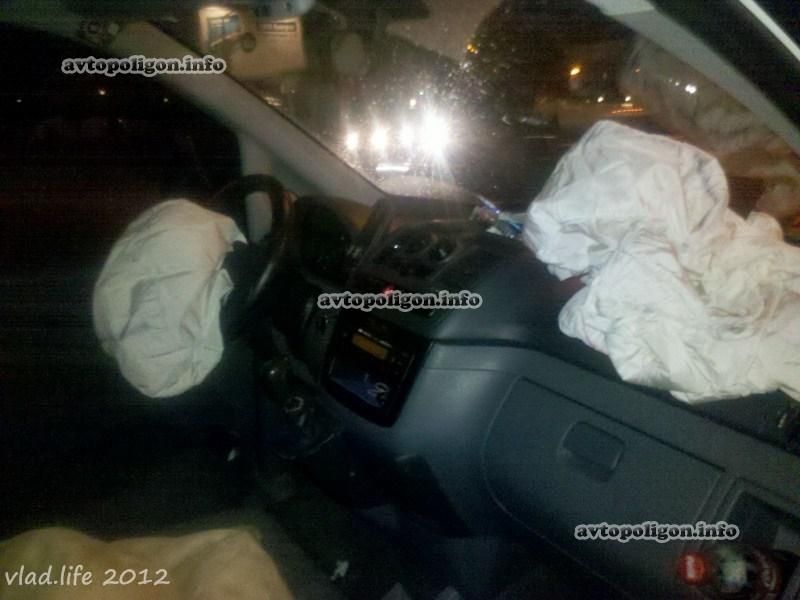 У Subaru полностью разбита передняя часть, сработали передние подушки, выломано заднее левое колесо. У Mercedes разбита передняя часть, сработали подушки безопасности. Бампер отлетел метров на 10 от авто.