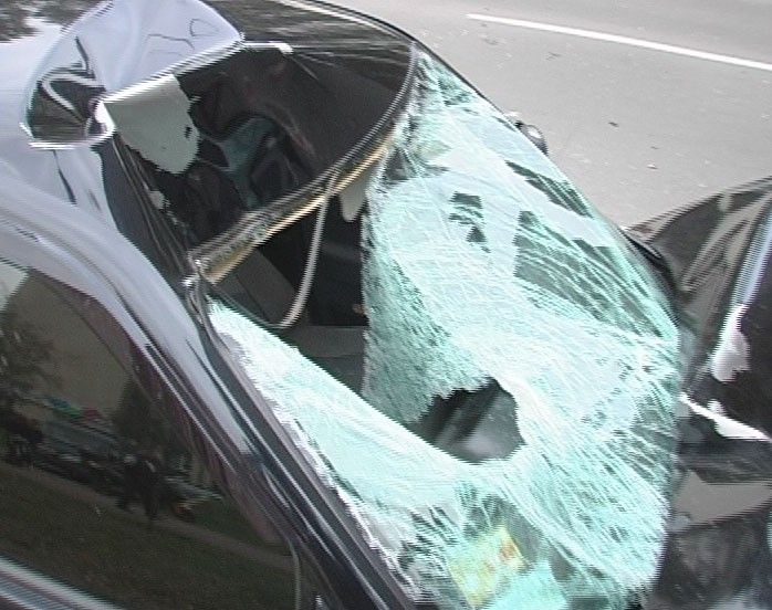 Автомобиль с пешеходом на капоте и на лобовом стекле проехал около 50 метров, после чего ВАЗ врезался в припаркованный грузовик.