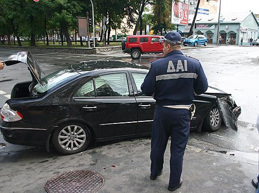 - Водитель Mercedes должен был притормозить перед знаком и пропустить Honda, он этого не сделал, вот и результат, - говорят работники ГАИ которые тут же прибыли на место. - Мы как раз оформляли аварию на параллельной улице, вдруг услышали удар... Honda начала дымиться, я с напарником бросился за огнетушителем. К счастью, все обошлось.