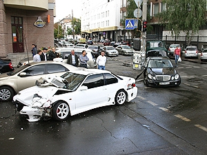 Автомобиль Honda, дождавшись зеленого света, рванул с места в направлении ул. Почайнинской. В это же время по газам ударил и водитель Mercedes S-класса (с одесскими номерами), который должен был остановиться возле знака "стоп". В результате водитель Honda как ни старался, но от удара уйти так и не смог.