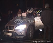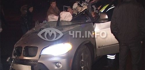 Ночью на улице Туполева внедорожник BMW X5 врезался в припаркованный грузовик ''МАЗ''. На месте работали две бригады врачей скорой помощи, сообщает .