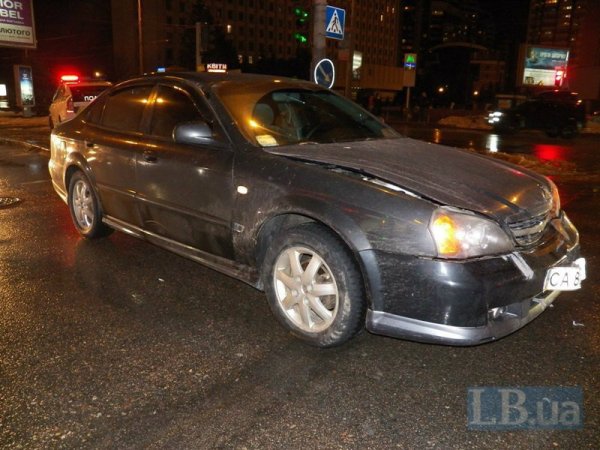 По предварительным данным, автомобиль УАЗ Национальной гвардии Украины, двигаясь по бульвару Леси Украинки в направлении Бессарабки, протаранил автомобиль Suzuki Grand Vitara, который выезжал на площадь со стороны улицы Коновальца. После столкновения УАЗ ударил Сhevrolet Laceti, двигавшийся от Кутузова.