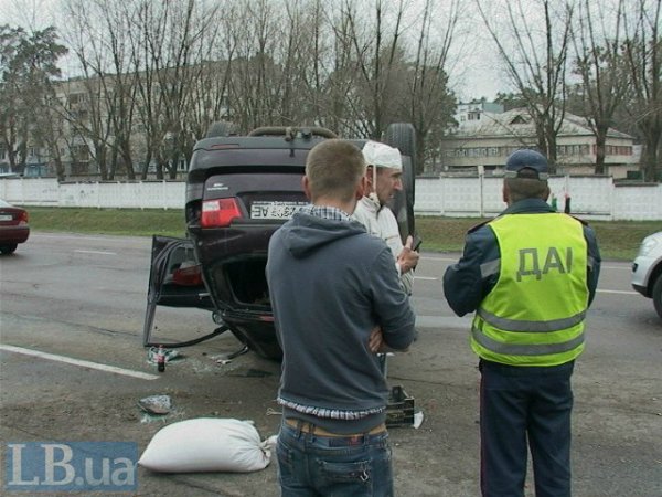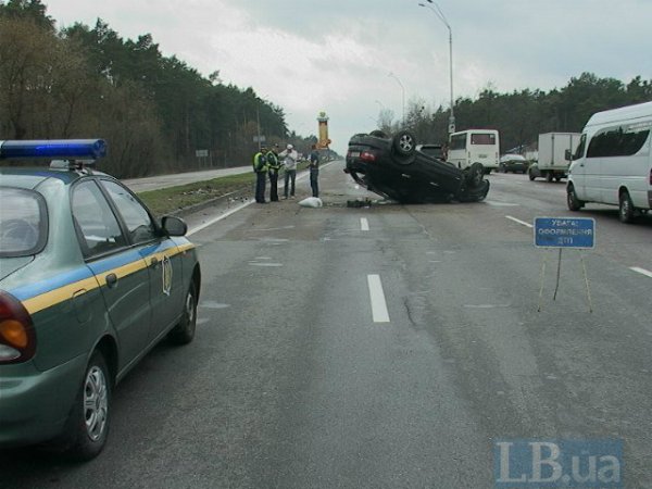 В среду, 15 апреля, в Киеве на Броварском проспекте внедорожник Ssang Yong вылетел на "встречку" и перевернулся, сообщает .