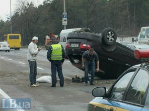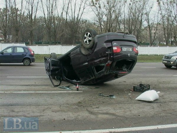 Киев: внедорожник Ssang Yong на большой скорости выскочил на "встречку" и перевернулся. (Фото)