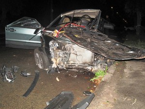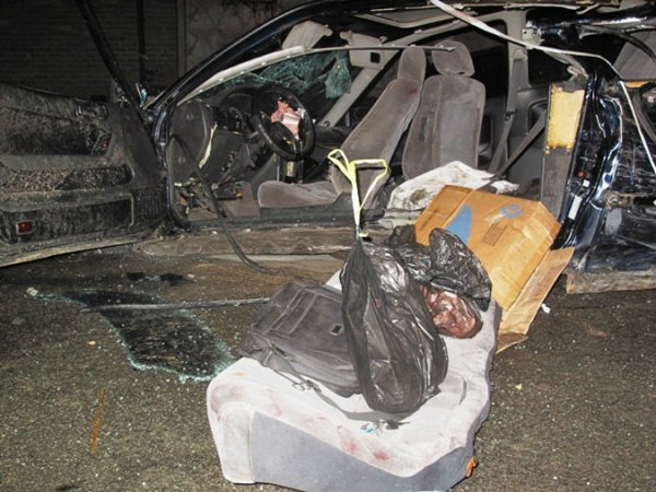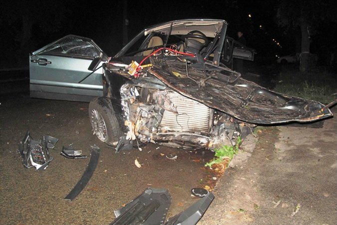 Honda Accord на огромной скорости двигалась со стороны ул. Заболотного в направлении Хотова. Вдруг, перед авто оказался велосипедист. Иномарка даже не с сменила траекторию, переехала через велосипед и полетела дальше, где припечатала автомобиль такси. Мужчина как раз привез пассажиров и собирался было уезжать, но… От удара его "ВАЗ" отлетел в дерево, после чего перевернулся и отлетел метров на 30. Honda после удара развернуло, сорвало крышу, а сиденья вылетели из авто.