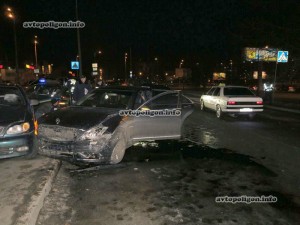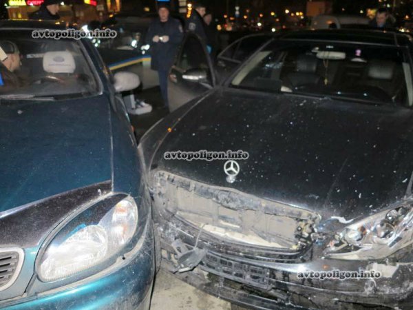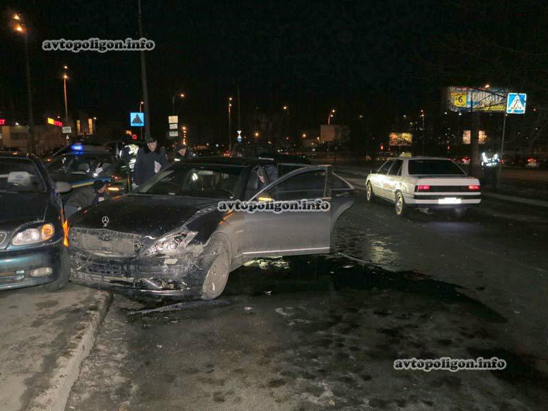 По невыясненным доподлинно причинам, водитель  люксового авто не справился с управлением в повороте и вылетел на полосу встречного движения, где протаранил автомобиль ЗАЗ "Таврия". От удара Таврия вылетела с дороги, а Mercedes, изменив направление движения, остановился уже в припаркованном на тротуаре Daewoo Lanos.