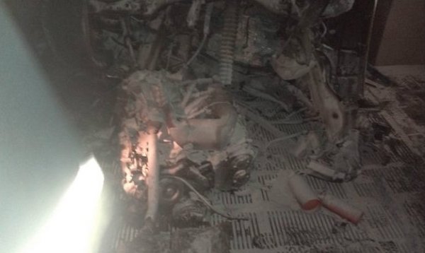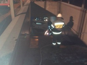 Разбитый автомобиль Seat Leon перевернулся на крышу и упал на ступеньки. В машине повредились элементы моторного отсека и начался пожар. Водитель скончался на месте – его зажало между панелью приборов и сиденьем. Пожар погасили сотрудники заправки с помощью 8 огнетушителей.