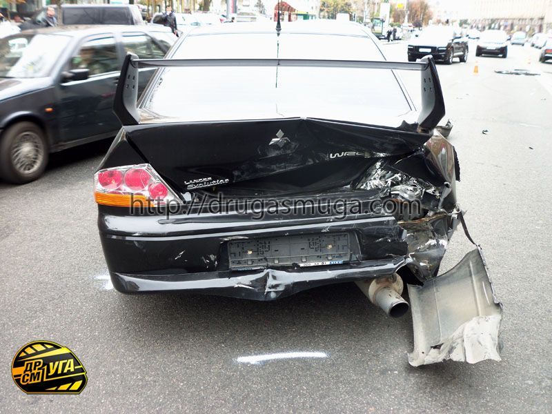 По словам водителя Mitsubishi Lancer Evolution у него что-то случилось с педалью газа (заклинила) его начало бросать из стороны в сторону. После чего он своей передней частью по касательной сначала врезался в Seat Leon, сделал разворот и миновав обычный Mitsubishi Lancer, который стоял за Seat ударил задом следующий автомобиль - Mitsubishi Galant. В результате столкновения Seat Leon подвинуло и он по касательной зацепил ГАЗель, а Mitsubishi Galant, в свою очередь притер автомобиль Mercedes.
