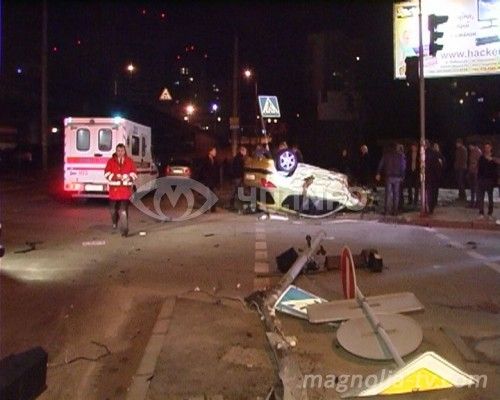 В Киеве на проспекте Науки, произошла серьезная авария. Столкнулись две легковушки. Peugeot ехал по главной. Водитель Toyota хотел пересечь проспект. Он почему-то проигнорировал знак уступи дорогу и выехал на главную, сообщает .