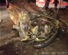 В результате ДТП машины разбросало по дороге. Peugeot перевернулся. Водитель Toyota закрыл свою разбитую машину и скрылся.
