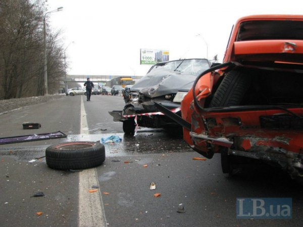 По словам водителя ЗАЗ-Славута, он двигался в направлении города Бровары. Внезапно автомобиль, двигавшийся перед Славутой резко перестроился вправо, как оказалось, объезжая стоящий в среднем ряду на "аварийке" ВАЗ. Водитель Славуты, не успев среагировать, на полном ходу протаранил "копейку" в заднюю часть. К несчастью, водитель ВАЗа в это время стоял на дороге возле багажника своего авто и попал между автомобилями. После столкновения ВАЗ отбросило под проезжавший правее грузовик Renault.