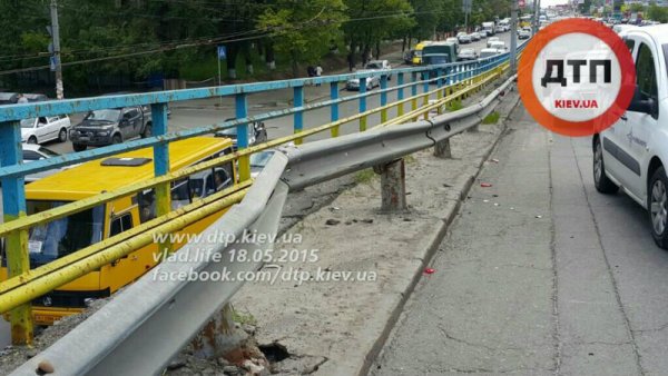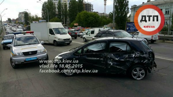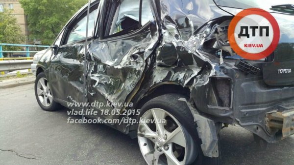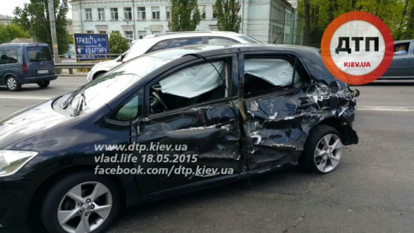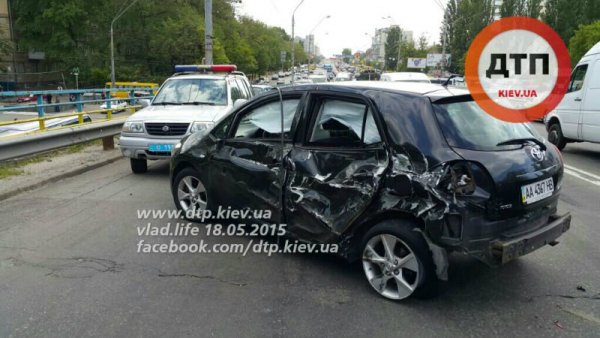 Водитель 9-тонного броневика Краз Спартан, двигаясь по проспекту Победы от Берестейской к Нивкам, на путепроводе по неизвестной причине выехал на встречную полосу, где протаранил встречный автомобиль Toyota. От сильного удара "японку" развернуло и она врезалась в попутный Москвич, двигавшийся в правом ряду. От удара Москвич врезался в отбойник.