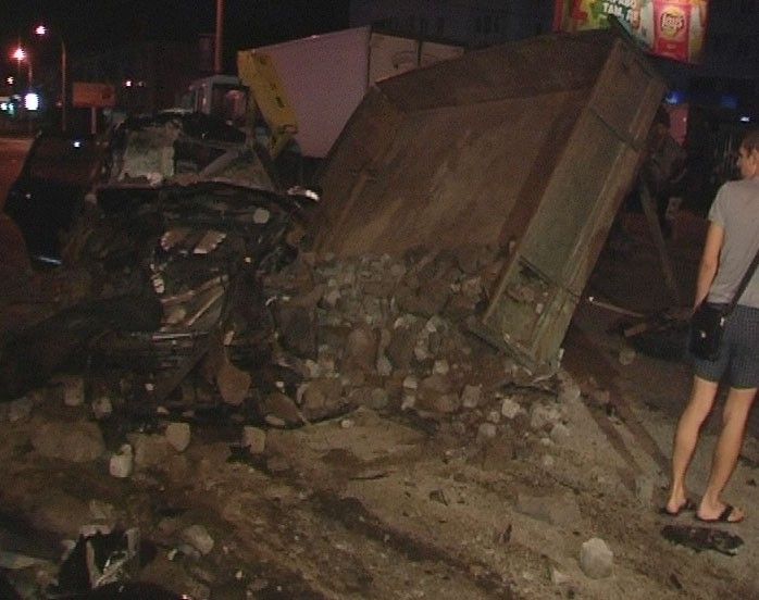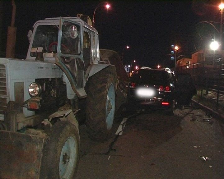 Трактор груженый камнем возвращался на базу после трудовой смены и ехал во второй полосе. Первая полоса проспекта была полностью занята припаркованными автомобилями, сообщает .