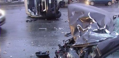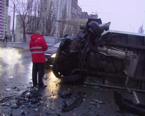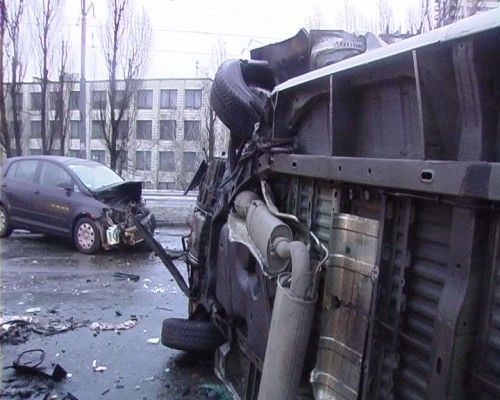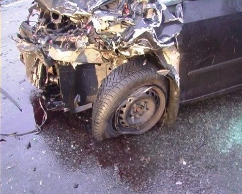 10 января на Харьковском шоссе, в Киеве, лоб в лоб столкнулись микроавтобус Renault и легковушка Volkswagen. Двое пассажиров микроавтобуса вытащили своего водителя из салона и помогли добраться к обочине. Судя по всему, мужчина сломал ногу. Травмировалась также и женщина-водитель Volkswagen, сообщает .