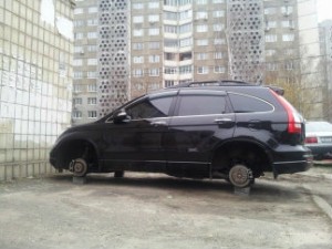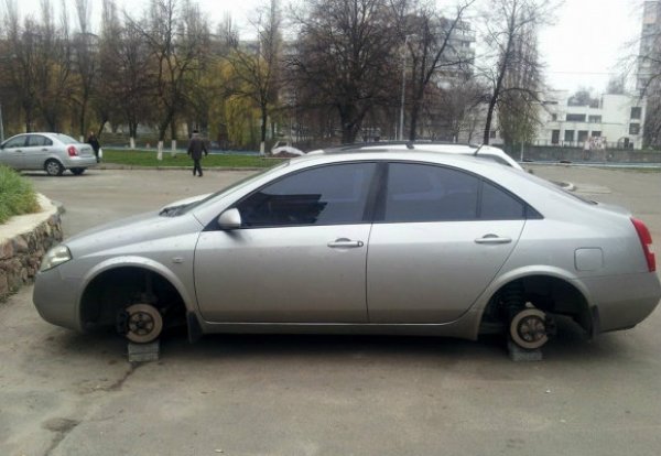 Небывалое по размаху воровство автомобильных колес произошло сегодня ночью в Киеве на массиве Виноградарь. Местные жители рассказывают, что на ул. Гонгадзе и пр. Правды "разули" не менее полтора десятка машин, сообщает .