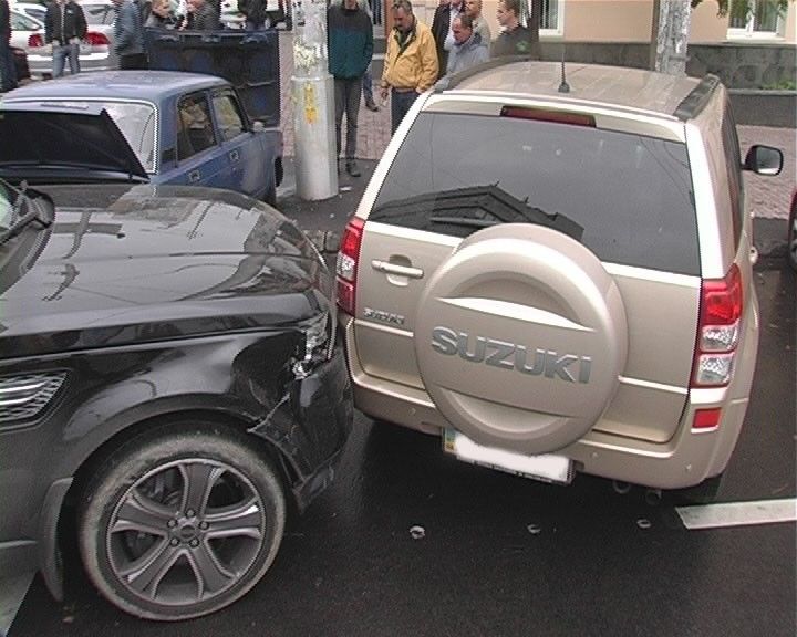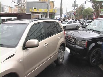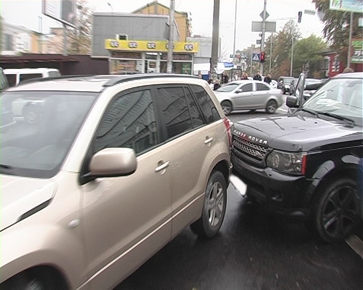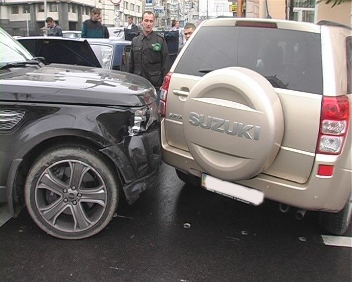 ДТП произошло в г. Киев, на пересечении улиц Антоновича и Жилянской 23 октября. По словам водителя ВАЗа он двигался на «зеленый» светофора и опережал троллейбус, как вдруг перед ним выскочил внедорожник Range Rover, который врезался в Жигули, а затем по инерции зацепил Suzuki Vitara, сообщает .
