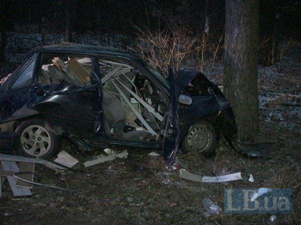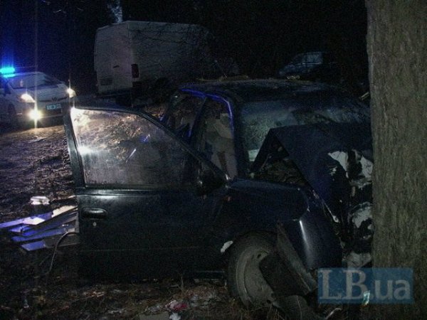 В понедельник вечером под Киевом, возле села Зазимье автомобиль Daewoo Nexia выехал за пределы проезжей части и врезался в дерево, сообщает .