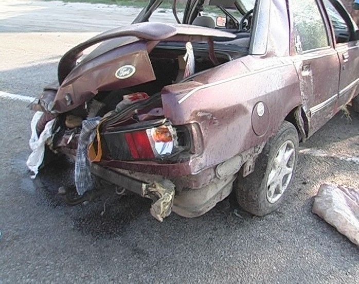 По невыясненным допдлинно причинам, водитель Ford Sierra не справился с управлением, скорее всего, из-за высокой скорости, после чего снес дорожный знак, чуть не влетев в глыбокий ров, и протаранил забор одного из домов и ворота. А после этого неуправляемый автомобиль отлетел в другой забор, сложенный из камня и застыл на дороге.