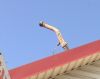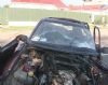 От столкновения двигатель Ford Sierra вместе с коробкой влетел в забор (ворота) одного из домов, а часть выхлопной системы спикировала на крышу этого же дома, пробив панели солнечных батарей.