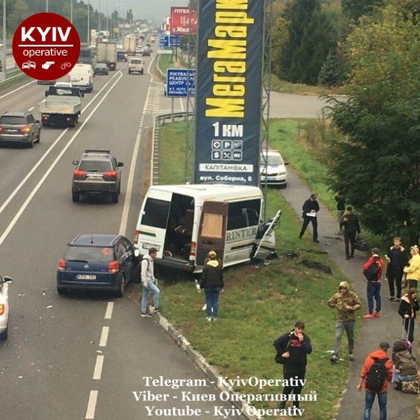 В результате, Mercedes вылетел на обочину, где столкнулся с рекламным сооружением. Сообщается, что около 10 человек получили травмы.