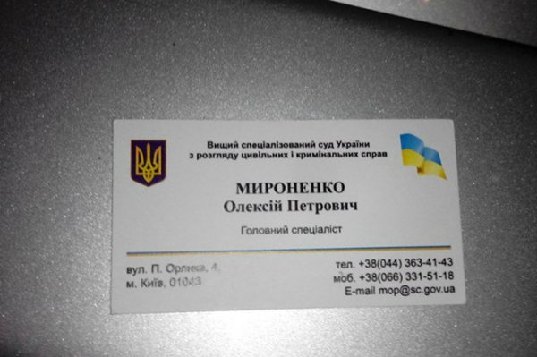 Полная должность Мироненко - "главный специалист отдела транспортного обеспечения управления хозяйственного обеспечения". То есть устроивший кровавое ДТП отвечает за транспортное обеспечение ВССУ - решает вопросы, связанные с водителями, гаражами, бензином, обслуживанием машин и т.д. У руководства на хорошем счету, даже получил полгода назад награду от самого главы Высшего спецсуда Андрея Солодкова за "добросовестную работу, высокий профессионализм, образцовое исполнение своих служебных обязанностей, инициативу и весомый вклад в развитие системы судоустройства".