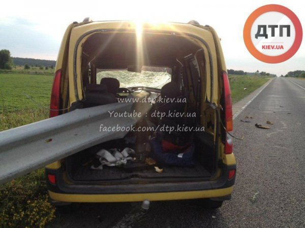 Киевская область: Renault Kangoo нанизался на отбойник. Уснувший водитель чудом выжил. (Фото)