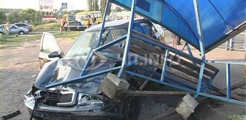 Киевская область: Skoda Octavia снесла остановку вместе с людьми. (Фото)