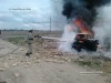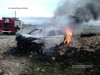 Из-за сильного столкновения автомобиль с двумя людьми загорелся. Спасатели деблокировали мужчин и ликвидировали пожар.