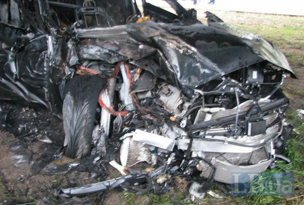 Автомобиль же после столкновения загорелся. Очевидцы вызвали спасателей, "скорую" и попытались погасить пылающий Mercedes. Однако машина сгорела полностью за считанные минуты.