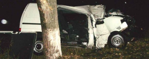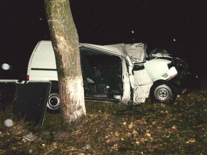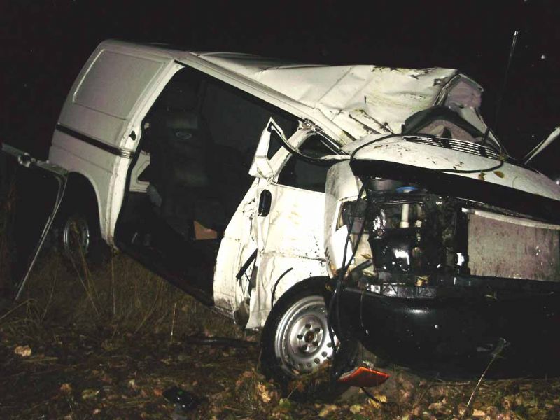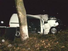 Вчера, в 21 часов 50 минут, в Киевской области, на 2 км автодороги ''Тетиев - Пятигоры'' водитель микроавтобуса Volkswagen Transporter не справился с управлением, съехал в кювет и совершил наезд на дерево.
