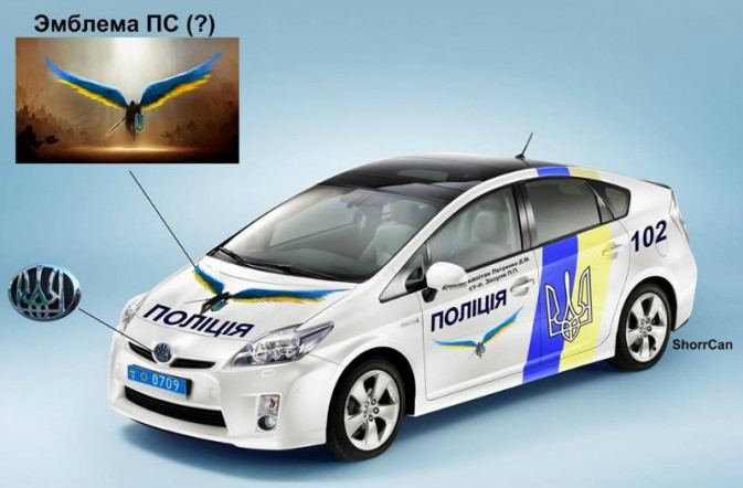 Украинцев, впрочем, английский вариант не впечатляет: они предлагают свои варианты. Среди них — авто с ангелом-воином с большими сине-желтыми крыльями на капоте, с трезубцами на дверях и развивающимся нацфлагом, а также — с бордовым и черным окрасом. А некоторые предлагают наносить эмблемы и слоганы "Служить и защищать". "Вариант от министра — это заимствование британской системы окраски. Но из-за характерных "шашечек" машины большинству напоминает такси. У меня же появилась идея не копировать английскую схему, а нарисовать свою, использовав цвета национального флага. Попутно я придумал и эмблему для новой патрульной службы — ангела-воина", — рассказал один из авторов предложенных проектов Юрий Гераскин.