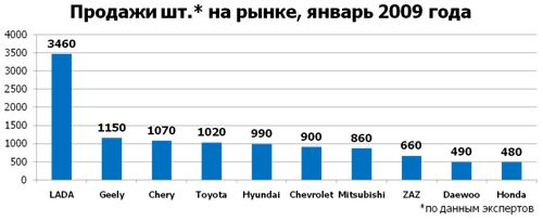 В январе 2009 года, как и ожидалось, на автомобильном рынке Украины произошел спад продаж.