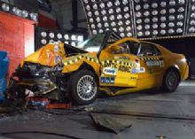 По словам экспертов, деформация кузова автомобиля после удара о сминаемый барьер на скорости 64 километра в час оказалась слишком сильной - у машины выгнулась крыша, сломался пополам порог, а дверь выскочила из проема. Кроме того, педальный узел седана сместился внутрь салона на 32 сантиметра, а приборная панель - на 20 сантиметров.