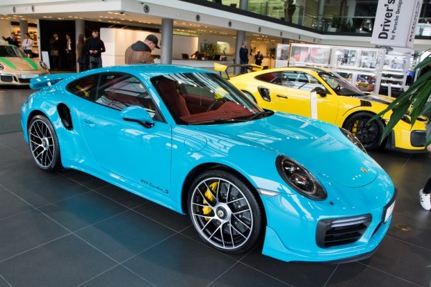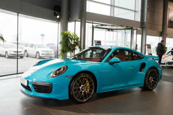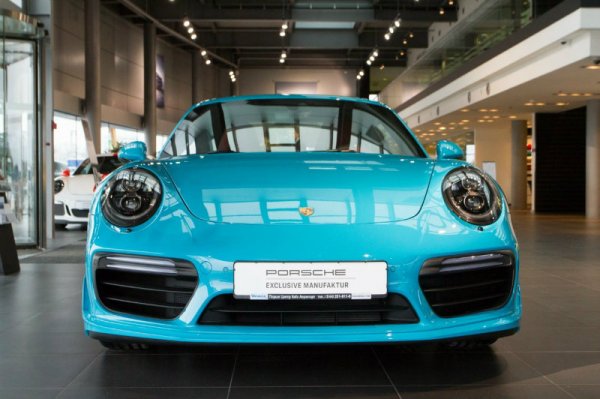Топова версія актуального модельного ряду 911 у кольорі Miami Blue, який вперше пропонується для моделі 911. У цій версії пакет зовнішнього дизайну Aerokit Turbo виконано у кольорі кузова, а відмінні акценти у дизайні екстер’єру створюють опори зовнішніх дзеркал, омивачі фар та напис назви моделі на бокових дверях у чорному глянсовому кольорі. Затемнені світлодіодні фари завершують симфонію. Окремої уваги заслуговує дизайн інтер’єру: поєднання салону з червоної шкіри з численними елементами, виконаними у жовтому кольорі. Витримана та доцільна інтеграція яскравого жовтого до циферблатів панелі приладів, ременів безпеки, стрічки салону, центральної консолі, панелі приладів, сидінь та дверей довершує гармонію кольору.