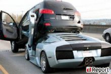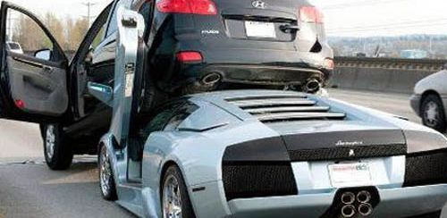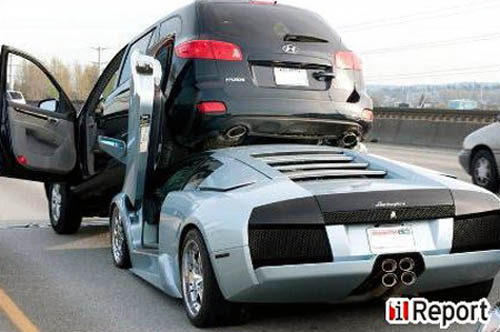 То ли водитель этого серебристого Lamborghini Murcielago устав стоять в пробке перепутал Hyundai Santa Fe с грузовиком, то ли просто у корейского внедорожника лучше тормоза. В любом случае, этот инцидент на одном из американских хайвэев можно смело назвать самой комичной аварией с участием Lamborghini.