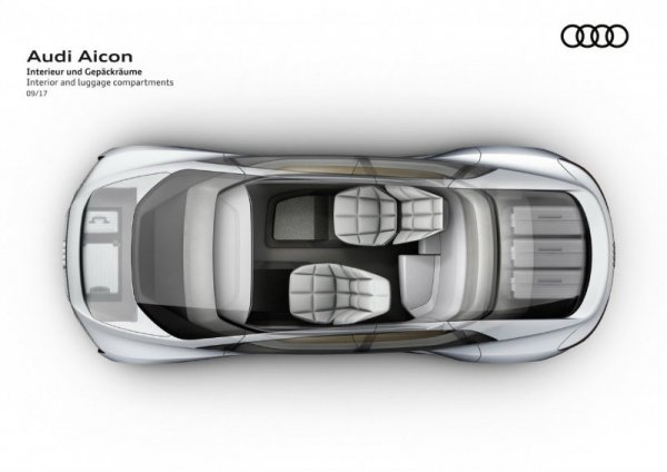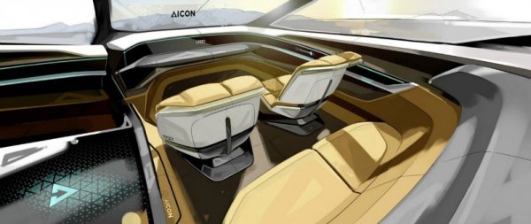 У Audi Aicon нет центральных стоек — задние заднепетельные двери открываются против направления движения. Для удобства доступа в салон передние кресла автоматически поворачиваются на 15 градусов.
