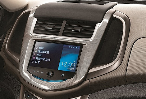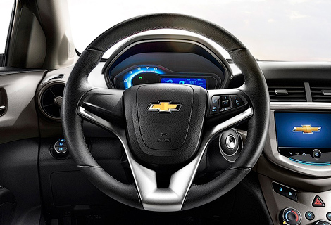 В интерьере «Авео» изменился дизайн приборной панели и появился мультимедийный комплекс MyLink с семидюймовым сенсорным экраном, навигацией, Bluetooth и функцией голосового управления Siri Eyes Free от компании Apple.