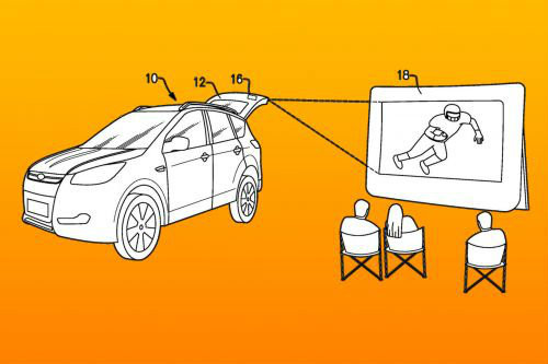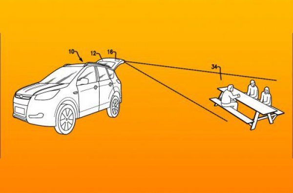 Ford подал заявку на патент, в которой содержатся эскизы, демонстрирующие работу встроенного в багажную дверь видеопроектора. На снимках изображен кроссовер, в нижнюю часто багажной двери которого встроен видеопроектор. Когда дверь поднята, он транслирует изображение на экран, установленный рядом с машиной, сообщает .