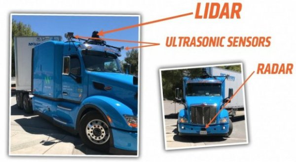 Из США пришло подтверждение того, что компания Waymo, которая является подразделением Google по разработке автономных автомобилей, приступила к испытаниям беспилотного грузовика на дорогах общего назначения. От обычных «траков» этот «Петербильт» внешне отличается тем, что на крыше кабины установлен лазерный радар и пара ультразвуковых сенсоров, а в бампер тягача встроен радар.