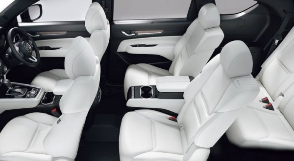 В список оборудования Mazda CX-8 могут входить: адаптивные светодиодные фары, 17- или 19-дюймовые диски, кожаный салон, мультимедийный комплекс с сенсорным экраном, проекционный дисплей, системы кругового видеообзора, распознавания дорожных знаков, автоматического экстренного торможения, предупреждения о выходе из занимаемой полосы, мониторинга "слепых" зон.