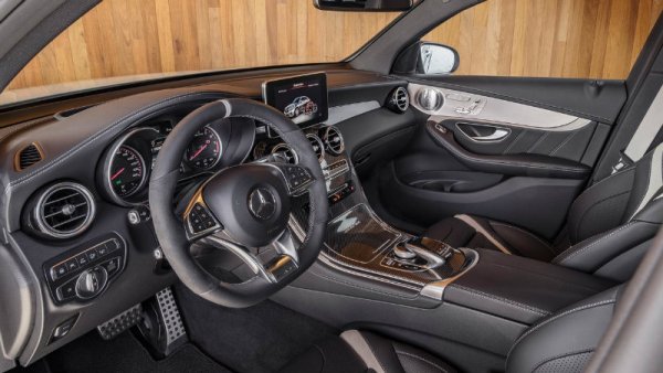 В список оснащения Mercedes-AMG GLC 63 также входят система выбора режимов работы управляющей электроники, 19-дюймовые колесные диски (20-дюймовые на S-версии или опциональные 21-дюймовые), рулевое управление с переменным усилием, а также 390-миллиметровые перфорированные тормозные диски спереди сзади.