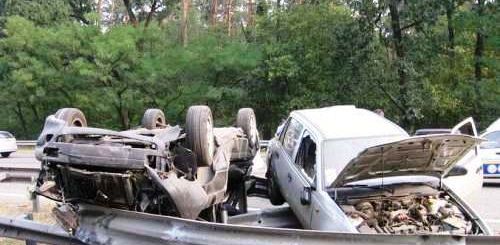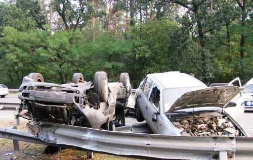 Машины двигались друг за другом на большой скорости. За несколько километров от Киева водитель Daewoo решил притормозить, Audi на всей скорости ударила «корейца» в заднюю часть. Толчок был такой силы, что обе машины потеряли управление, их снесло в разделительный отбойник. Стальные рейки такой удар выдержать не смогли, и машины перевернувшись на крыши, в результате чего вылетели на встречную полосу.