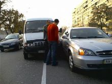 Водитель „Жигули” согласился взять у виновника аварии деньги, после чего уехал с места происшествия. Водитель Chevrolet вызвал ГАИ и ожидает их приезда.