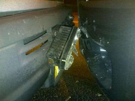 После столкновений у Mercedes остался побитый бампер, изуродована передняя решетка и немножко пострадала передняя левая фара. У Outlander побит бампер, зацепило крышу багажника, а на асфальте лежит один из стоп-сигналов.